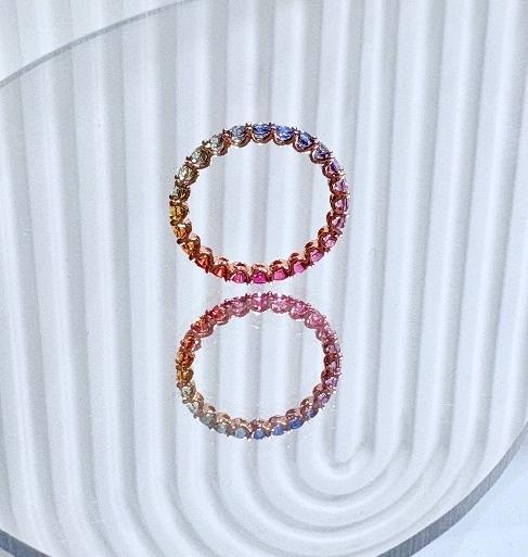 Natural rainbow tourmaline ring set in 18K rose gold.